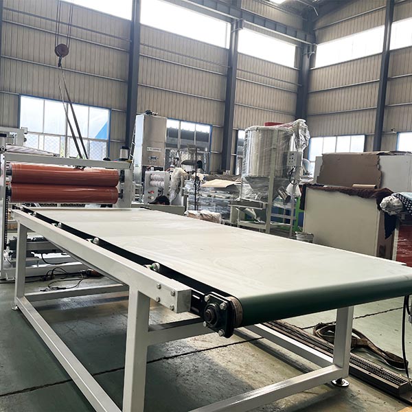 軟Pvc片材設備:設備主要有120單螺擠出機,三輥壓光機,冷卻托架,膠輥牽引機,剪板機,輸送帶裝置組成,軟Pvc片材設備產品標準寬度1000mm,厚度6mm,Pvc龜背板設備可生產龜背紋,橘皮紋,方格紋各種紋路,軟Pvc片材設備可根據客戶要求加工訂制設備,軟Pvc片材設備主要用于豬舍建設,各種獸用養殖,建筑工程,游泳池建。